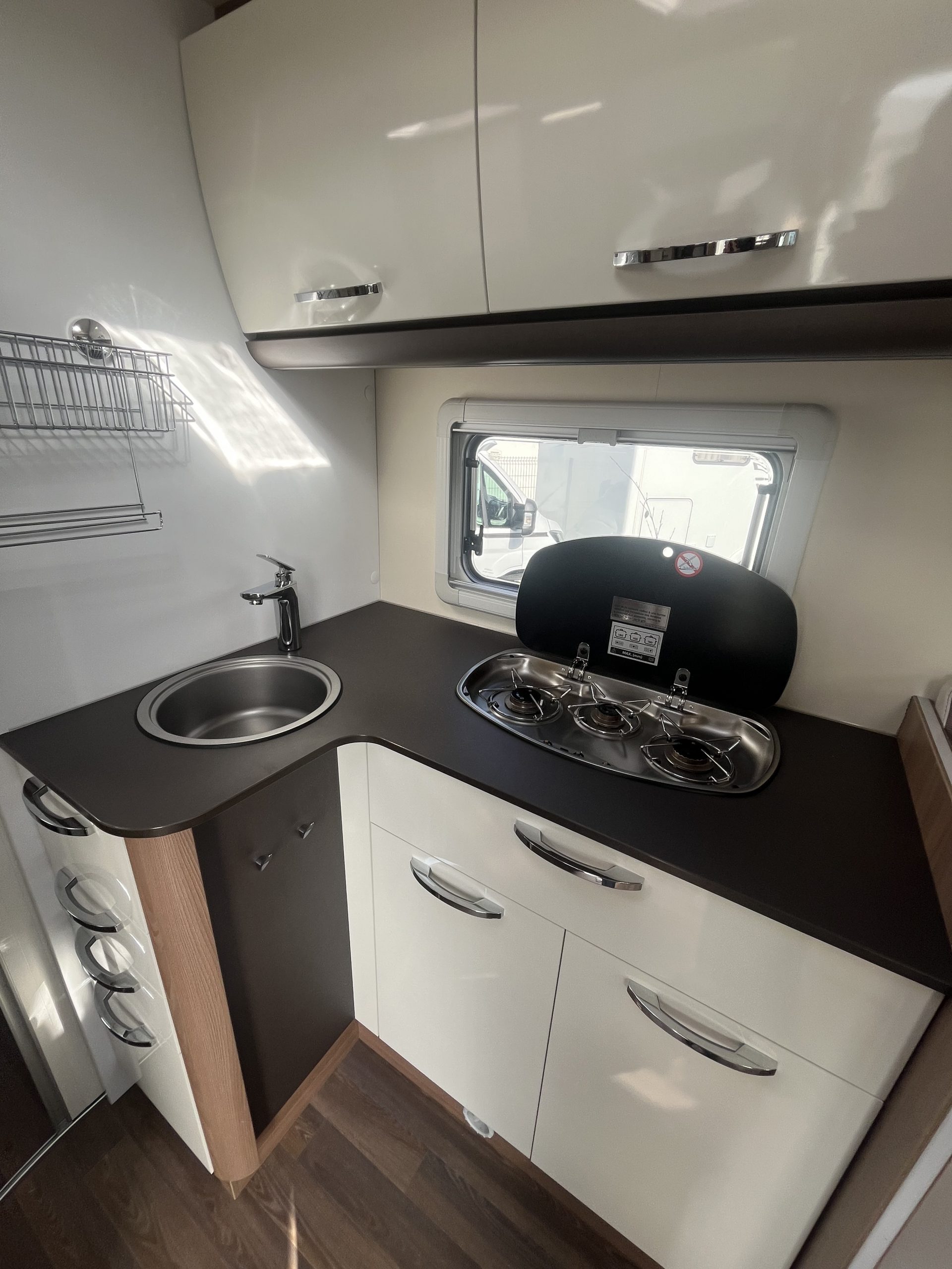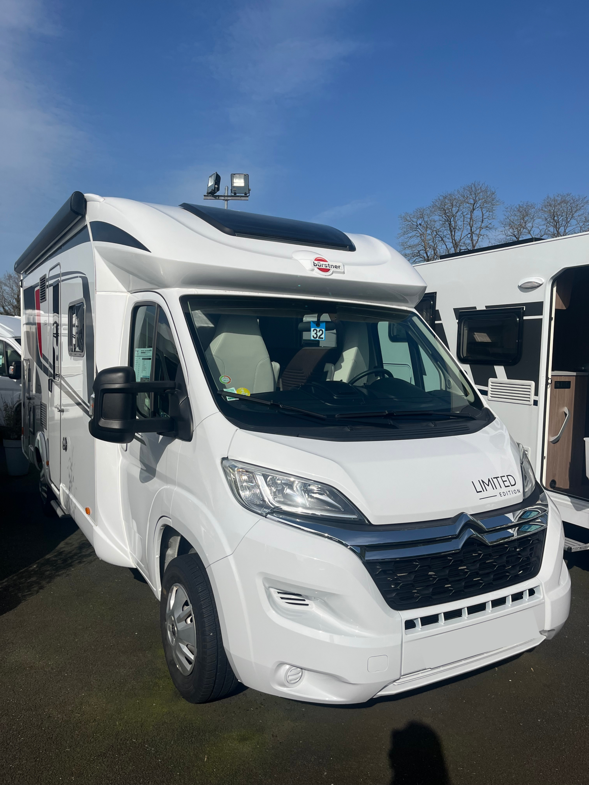 - Options : Store extérieur, store Remis, lit pavillon, télévision écran plat, panneau solaire, porte vélo ascensionnel, porte cellule grande largeur, fermeture centralisée, multimédia caméra de recul, skyview, alarme.
